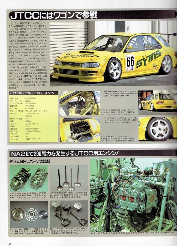 Arguably one of the most prominent, yet unobtanium Imprezas to ever grace the race tracks and years later, the internet. Long story short, what started as SYMS shop demo car for products the company produced for sale back in the early 90s, later turned into quite literally a psychotic near-space-frame wagon that the company built to go against the big guns of Toyota and Honda in JTCC.