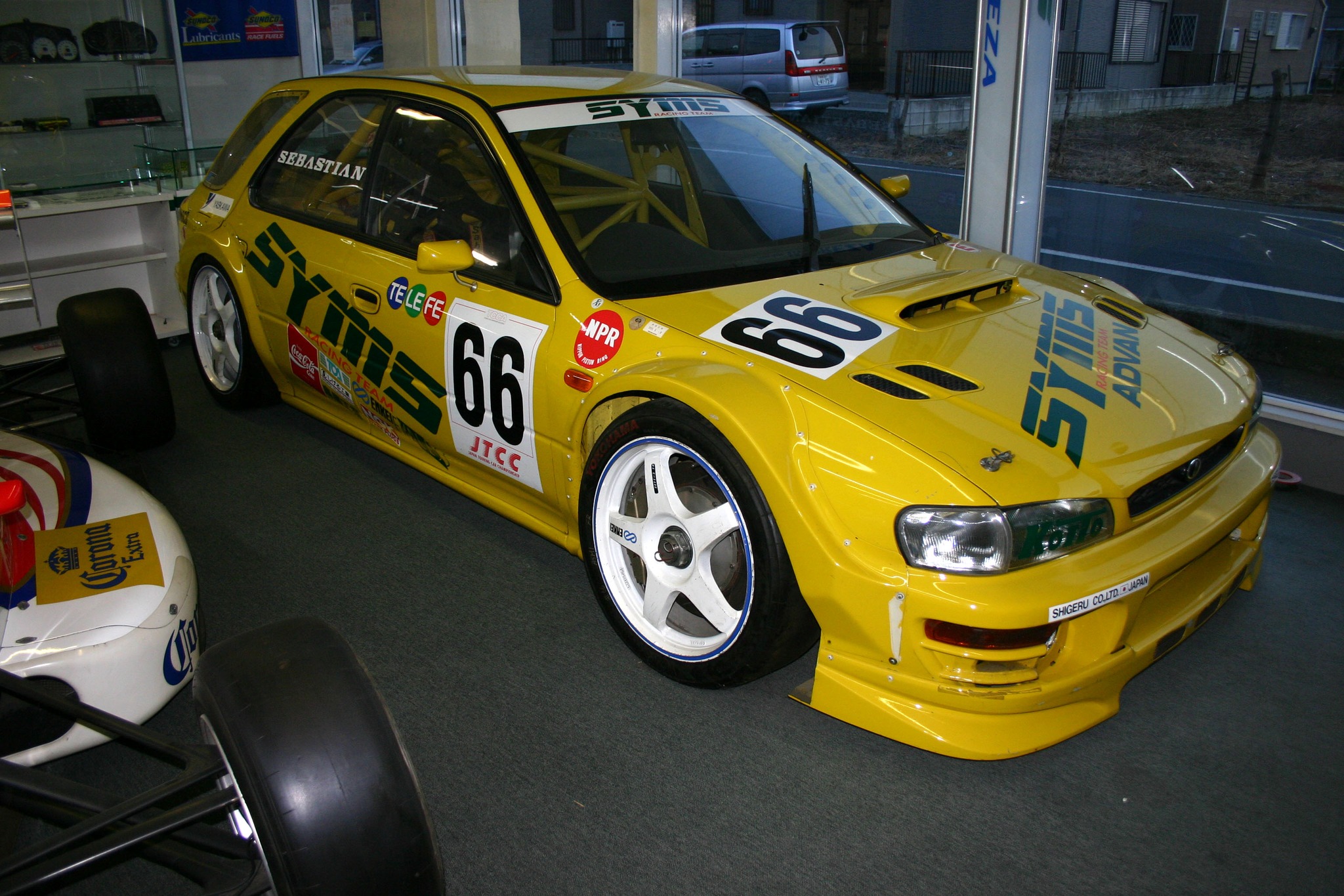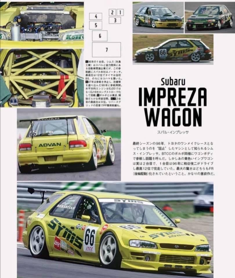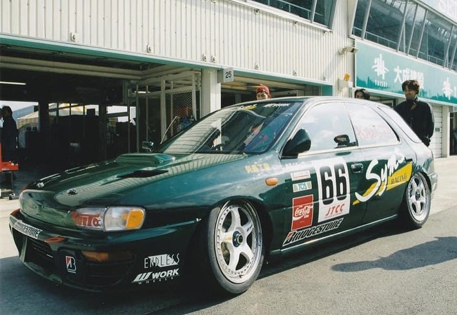 Arguably one of the most prominent, yet unobtanium Imprezas to ever grace the race tracks and years later, the internet. Long story short, what started as SYMS shop demo car for products the company produced for sale back in the early 90s, later turned into quite literally a psychotic near-space-frame wagon that the company built to go against the big guns of Toyota and Honda in JTCC.
