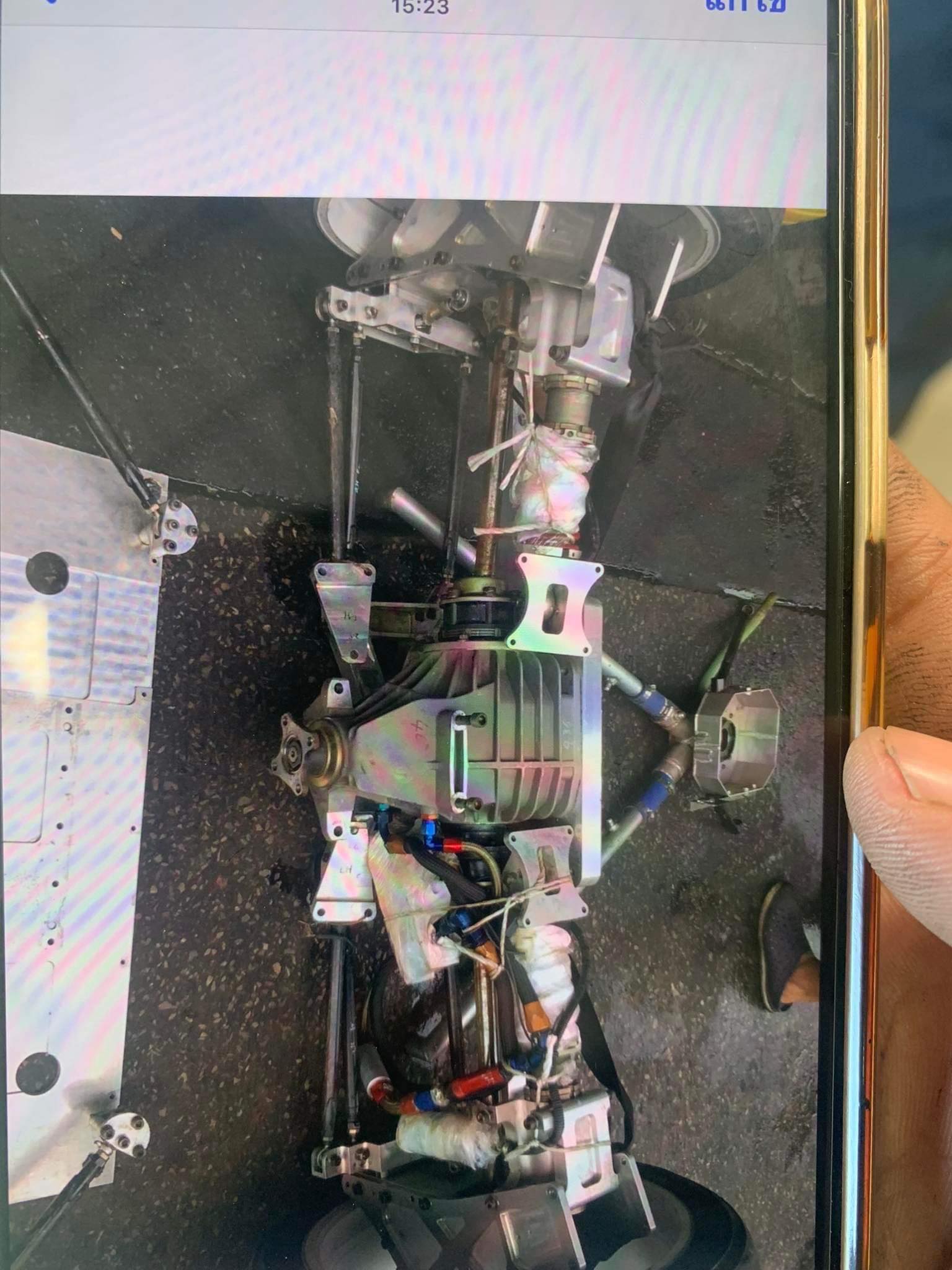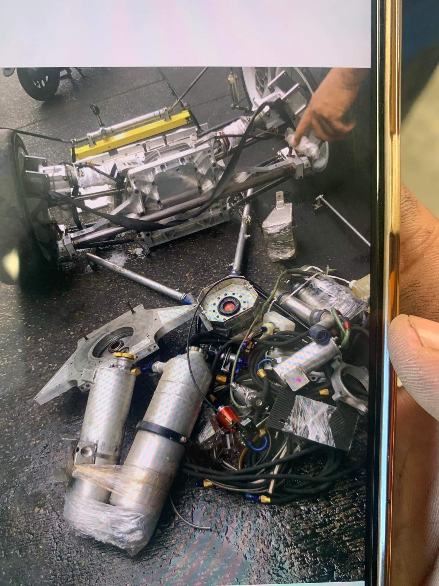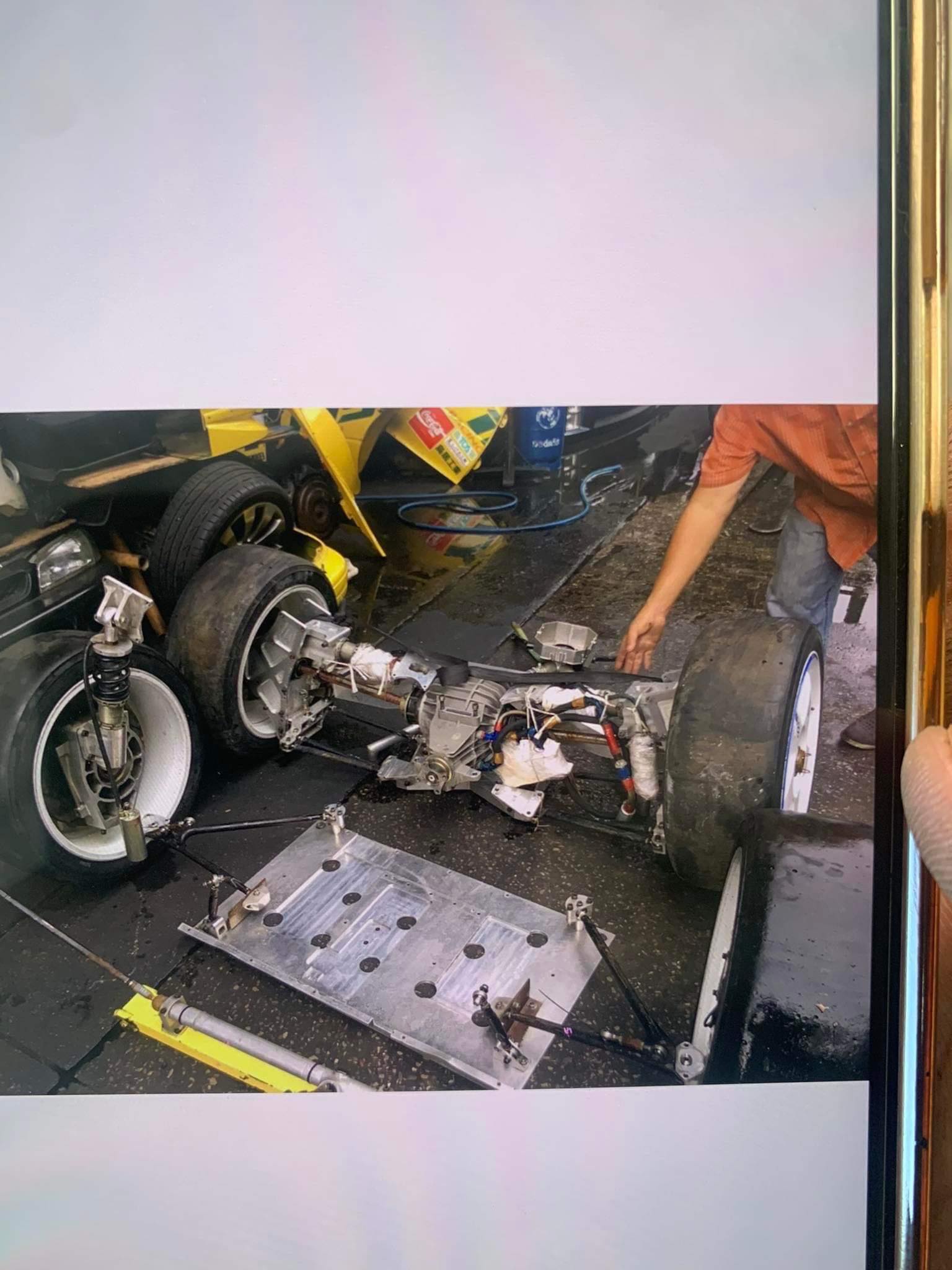 Transmission is Hewland SGT 6 speed sequential unit based on photos and limited info. The trans is contained in a motor plate that houses the clutch assembly and acts like a bell housing. The motor plate was made to fit the tunnel portion of the car and is a supporting member. Rear differential is reported to be a variant of a BMW racing unit housed in a custom rear bulkhead that acts as a crossmember as well.